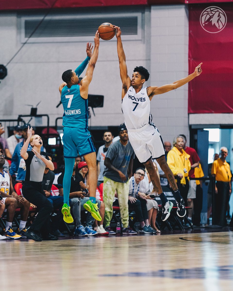 Similarly he’s leading the Hornets summer league team in points per game, with 14.6. That’s coming on 13 field goal attempts per game and a 34% shooting from the field. On this particular play he tried to run out the clock on the final shot. Minott completely stuffed him, leading to a Wendell Moore three point attempt. Moore missed. At halftime the Wolves trailed 41-32, with only seven assists, shooting 1-12 from three.
